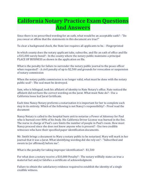 Online PDF NOTARY QUESTIONS AND ANSWERS CALIFORNIA PDF Open Library